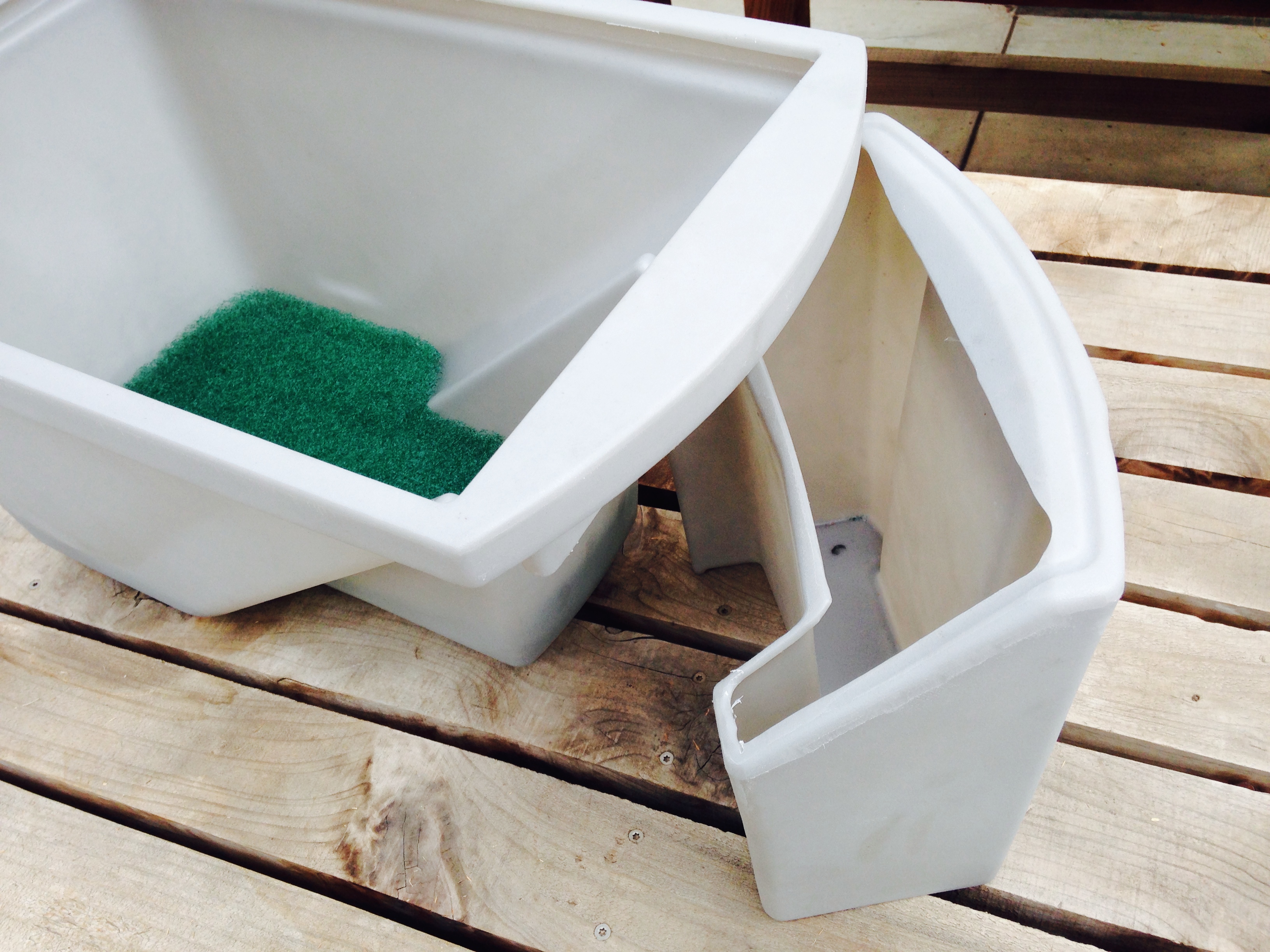 The BioPod has these 30 degree ramps that the larvae crawl up to leave the colony to pupate. It also has a great little collection chamber to gather the grubs for feeding to your animals.