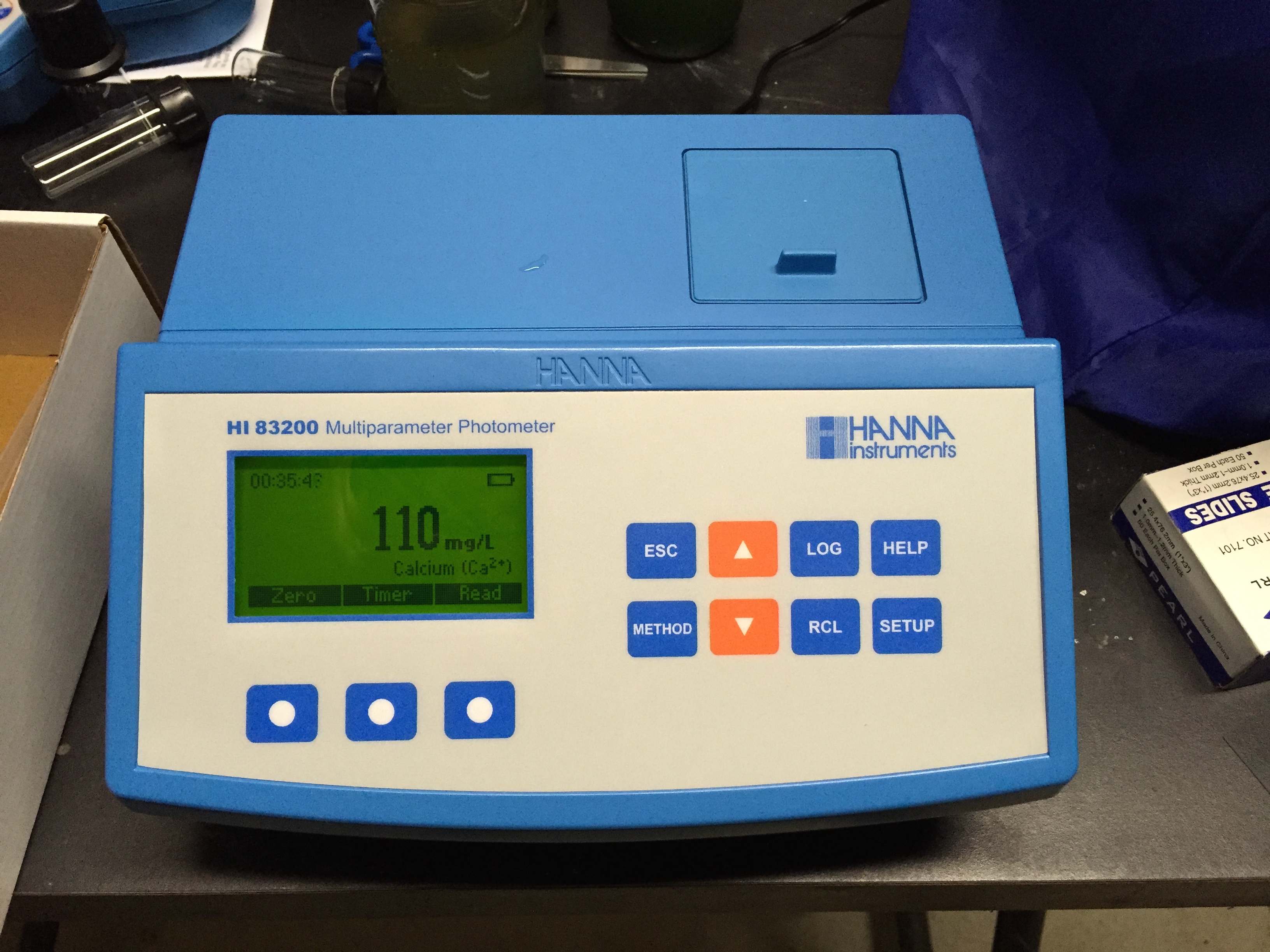 After carefully shopping around, I decided on the Hanna Photometer HI83200 for laboratories. There are a few different models they have, but this one tests just about everything I’d like to know except for nitrate. So I went ahead and got the HI96786 Nitrate field photometer.