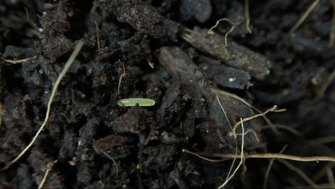 In our case, the cricket definitely came before the egg. For awhile there, I couldn’t even see the eggs they’re so small! The baby crickets just kind of showed up and I completely missed the eggs in the first habitat due to dim lighting. Now I have a little T5 fluorescent light that makes them glow as if Orcs were nearby! Very easy to see. This is great because the older crickets can eat the eggs and babies so its important to get them in their own habitat as soon as possible to keep the population strong. Here’s some photos of what an egg looks like and a bonus baby photo because they’re so darn cute! Click on the photos to enlarge.