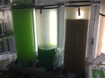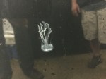 Upon arriving, we were greeted by Tommy Knowles, who I think has been raising jellyfish at the Aquarium for 13 years. He led us through some back rooms full of neat equipment and down a long hallway that just so happens to be right next to a million gallon tank on the other side of the wall. After going through the underground maze, we entered the jelly room full of special tanks called kreisels where they culture the jellyfish. Inside the jelly room, we met John Lambert who raises the food for the many types of jelly fish. Bubbling like columnar cauldrons, there were three types of alga being cultured for the jellies. On the other side of the room, they raised brine shrimp and on another wall they had some more bubbling tubes raising copepods, which are tiny crustaceans.